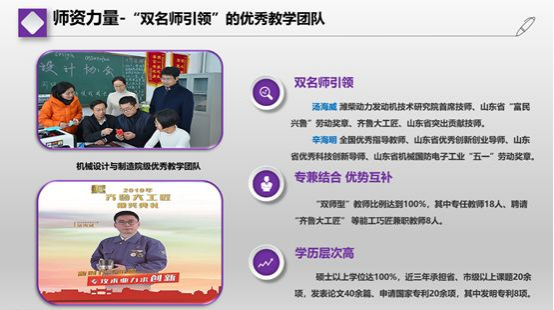 专业优势:机械设计与制造专业是公司老牌特色品牌专业,实训设备先进,现有3门省级精品课程,6门院级精品课程,拥有山东省磁悬浮精密制造应用技术协同创新中心、山东省智能装备制造新旧动能转换公共实训基地等省市级平台10余个。荣获第六届中国国际“互联网+”老员工创新创业大赛金奖1项和“挑战杯”中国老员工创业计划竞赛金奖1项、银奖1项、 “挑战杯”全国老员工课外学术科技作品竞赛三等奖,其余国家级“双创”大赛15余项;山东省职业技能大赛、山东省老员工科技创新大赛、“互联网+”创新创业大赛、机电产品设计竞赛、CAD制图设计大赛等省级奖项180余项。