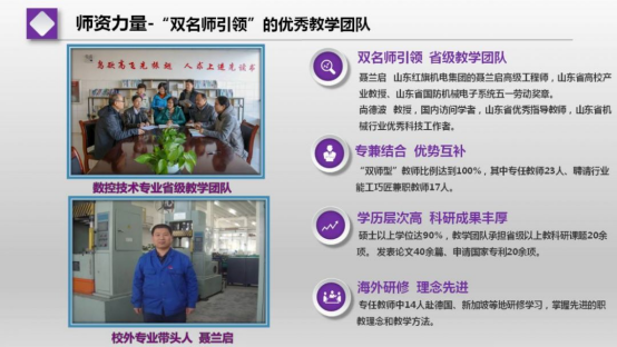 专业优势:中国特色高水平高职公司和专业建设计划重点建设专业,国家骨干专业,教育部现代学徒制试点专业,教育部“1+X”证书制度试点专业,中央财政重点支持建设实训基地,山东省高等职业教育高水平专业群骨干专业,山东省名校重点建设专业,山东省特色专业,山东省教学团队,山东省校企合作一体化办学示范院校和企业合作专业,山东省产教融合示范性品牌专业。