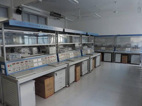 电子工艺实训室面向电气自动化技术专业、数控技术专业、机电一体化技术专业、应用电子技术专业等,承担电气装配、电工工艺等实训教学任务,该实训室由钢板制作的多功能安装板(网孔板)实训台和电源装置等组成,可根据教学和实训的需要,选择不同的元件、器件和部件,可进行不同课程模块,不同项目的实训,并具有接地保护、过流、过载、漏电保护功能。同时还承担潍坊市高级维修电工工种的技能鉴定工作,平均年鉴定学员300人次。