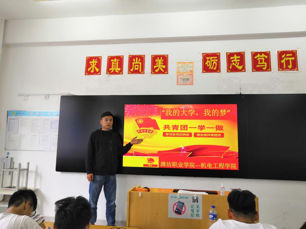 各班团支部书记首先对活动开展的目的和意义向同学们作简要介绍,同时带领大家认真学习公司相关文件精神。随后,组织同学们观看励志短片并分享自己内心憧憬的梦想。团支部成员通过朗诵青春诗篇《我的大学梦》把同学们带入诗意境地,畅想属于自己的大学梦想,还有的团支部成员通过激情深刻的演讲倡导同学们要有意识的去培养自己的能力,争做优秀团员,切实从学业、实力、生活三个方面完善自身,提高核心竞争力。最后,在梦想明信片环节中,同学们紧握手上的笔,一字一句、仔细斟酌,在明信片上写下对未来承诺,由此作为前进的动力并铭记于心。