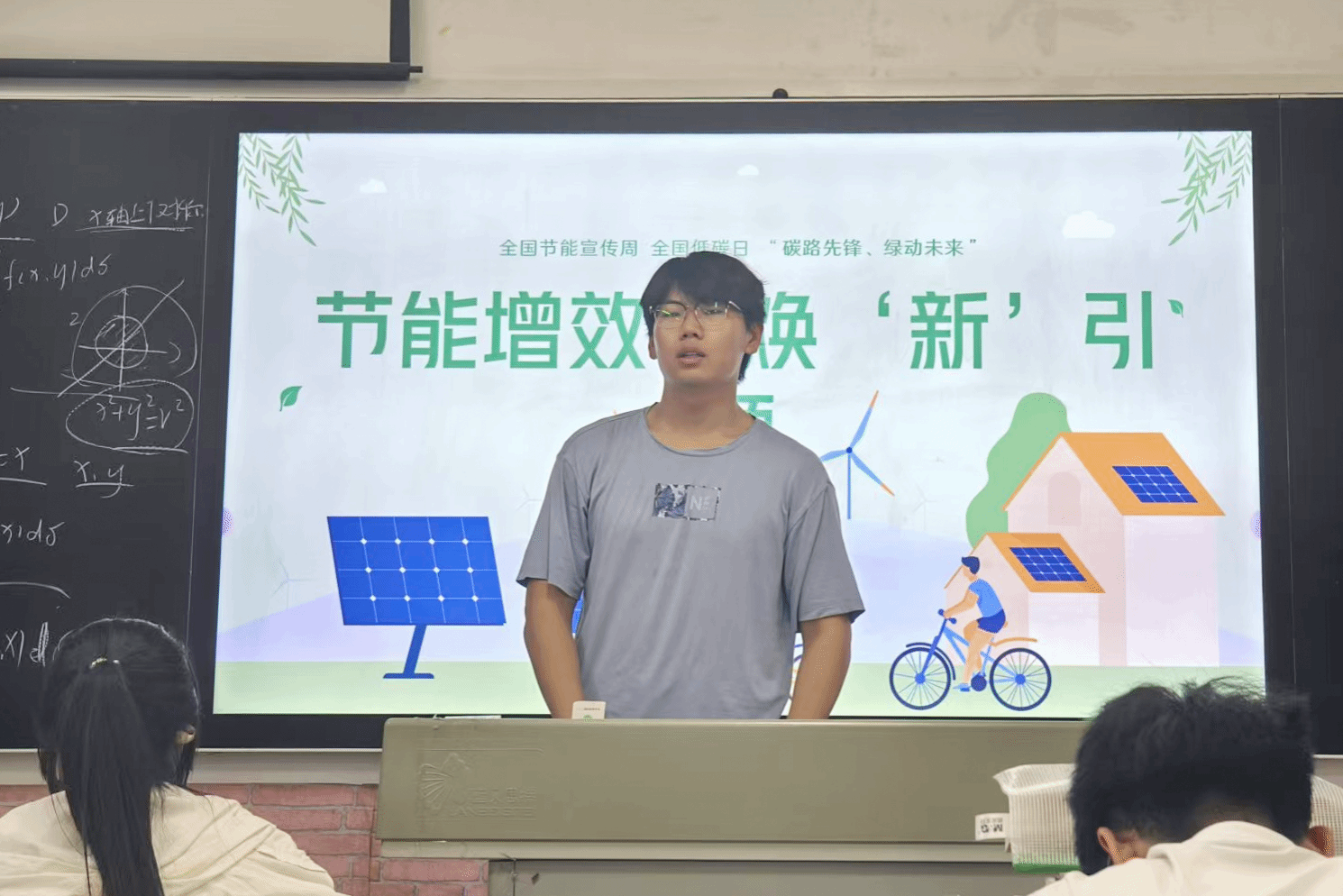 在“节能增效,焕‘新’引领” 主题班会中,各班通过科普视频、数据图表,直观展现全球能源危机现状与我国“双碳”目标意义。互动环节中,同学们围绕宿舍与教室场景,分享随手关灯、空调控温等节能实践经验,现场气氛热烈。活动还设置了知识竞答环节,通过趣味互动巩固所学知识,让节能理念在寓教于乐中扎根同学们心间。