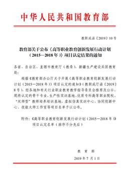教育部关于公布《高等职业教育创新发展行动计划(2015-2018年)》项目认定结果的通知(教职成函〔2019〕10号)