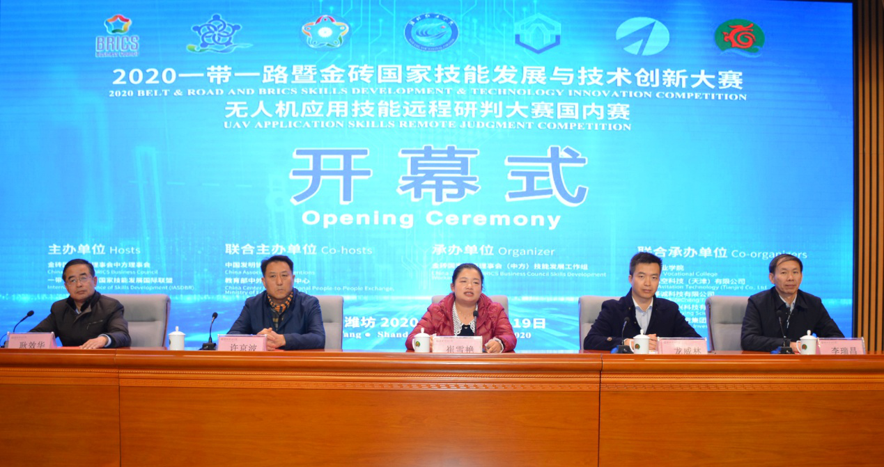 12月16日晚,由金砖国家工商理事会中方理事会、一带一路暨金砖国家技能发展国际联盟主办,伟德国际victor1946承办的2020年一带一路暨金砖国家技能发展与技术创新大赛------无人机应用技能远程研判大赛开幕式在山东潍坊公共实训基地共好报告厅举行,公司副经理李瑞昌出席开幕式。本次比赛由来自北京、天津、广东、吉林等省、市、自治区56支代表队参加比赛。