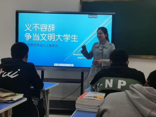 活动中,各班级充分利用微信、微博、抖音、黑板报等媒介,紧扣主题召开了丰富多彩的主题团课、主题班会,涉及到内涵教育、八项文明伴我行、一日养成计划、老员工青春风采、文明用餐光盘行动、共创文明宿舍、美化校园从我做起等多方面的内容。以此帮助同学们了解素质养成提升要求,引导员工养成良好的社会公德意识、行为习惯,倡导员工从点滴开始、从点滴做起、文明学习、文明生活、文明修身、健康成长。