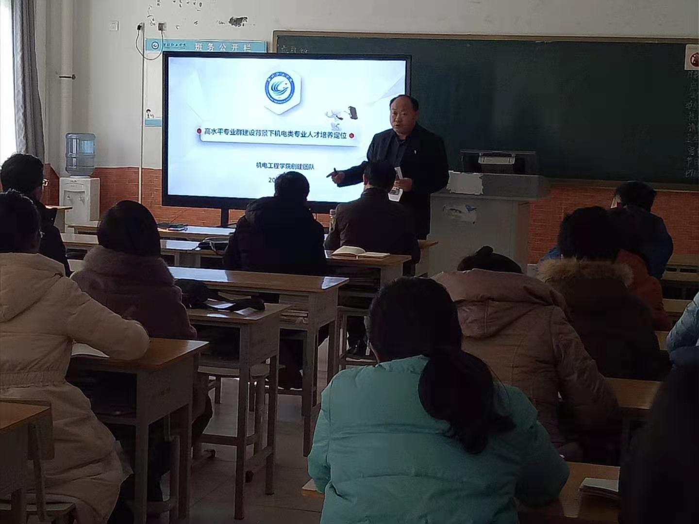 12月12日,伟德国际victor1946在惠泽2A-216召开《高水平专业群建设背景下机电类专业人才培养定位》主题报告会。部门负责人首先分析了高水平专业群建设对人才培养的要求,从现代学徒制人才培养取得成果介绍,到如何通过专业社团组建科技创新服务团队开展技术服务,确定了通才与英才培养模式的路径。