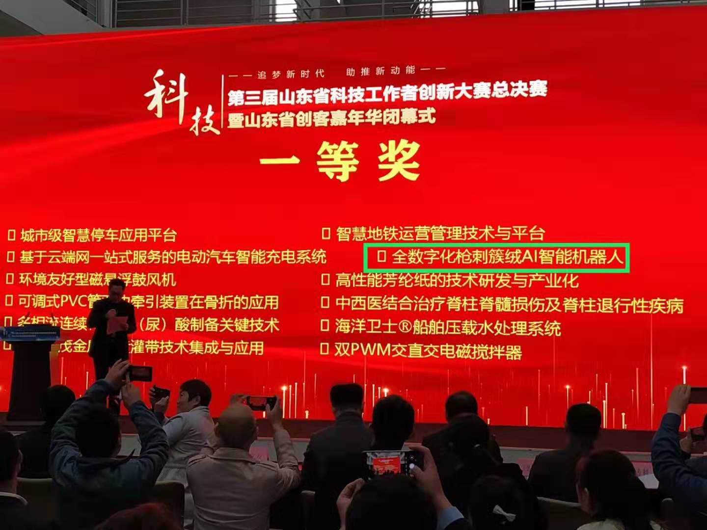 2019年山东省“创客嘉年华“暨第三届山东省科技工作者创新大赛决赛于10月25日在日照职业公司举办,由伟德国际victor1946院辛海明老师主持,联合山东省工业和信息化研究院申报的“全数字化枪刺簇绒AI智能机器人“项目荣获大赛一等奖。公司是全省唯一一所荣获一等奖的高职院校,实现公司在该赛项上的新突破。