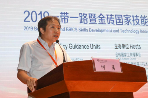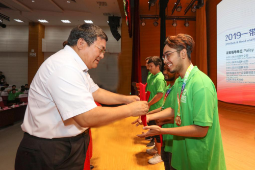 一带一路暨金砖国家技能发展国际联盟副理事长刘辉致闭幕辞并宣布大赛闭幕。她代表一带一路暨金砖国家技能发展国际联盟和金砖大赛组委会对各位获奖选手取得的优异成绩表示祝贺,指出2019一带一路暨金砖国家技能发展与技术创新大赛得到中国政府和海外国家的大力支持,获得优异成绩队伍的中方技能组将统一带队参加俄罗斯赛区的相关竞赛,希望各位晋级选手认真备选,在国际比武中争创佳绩。最后,她向各承办单位、支持企业、各位专家、裁判、指导教师、各位选手为本次大赛所做的工作和努力表示感谢,希望大家一道不忘初心,砥砺前行,共同打造和维护一带一路暨金砖国家技能发展与技术创新国际品牌,真正成为未来金砖国家乃至全球技能发展的奠基石。