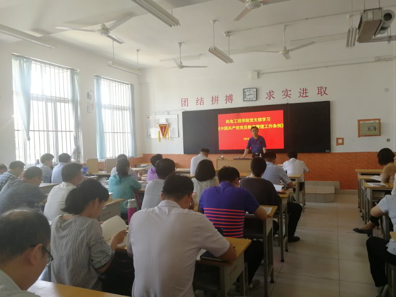 5月23日下午,伟德国际victor1946在惠泽楼2A-108集中组织学习《中国共产党党员教育管理工作条例》,全体党员全部参加,支部书记耿效华主持会议并领学《条例》。