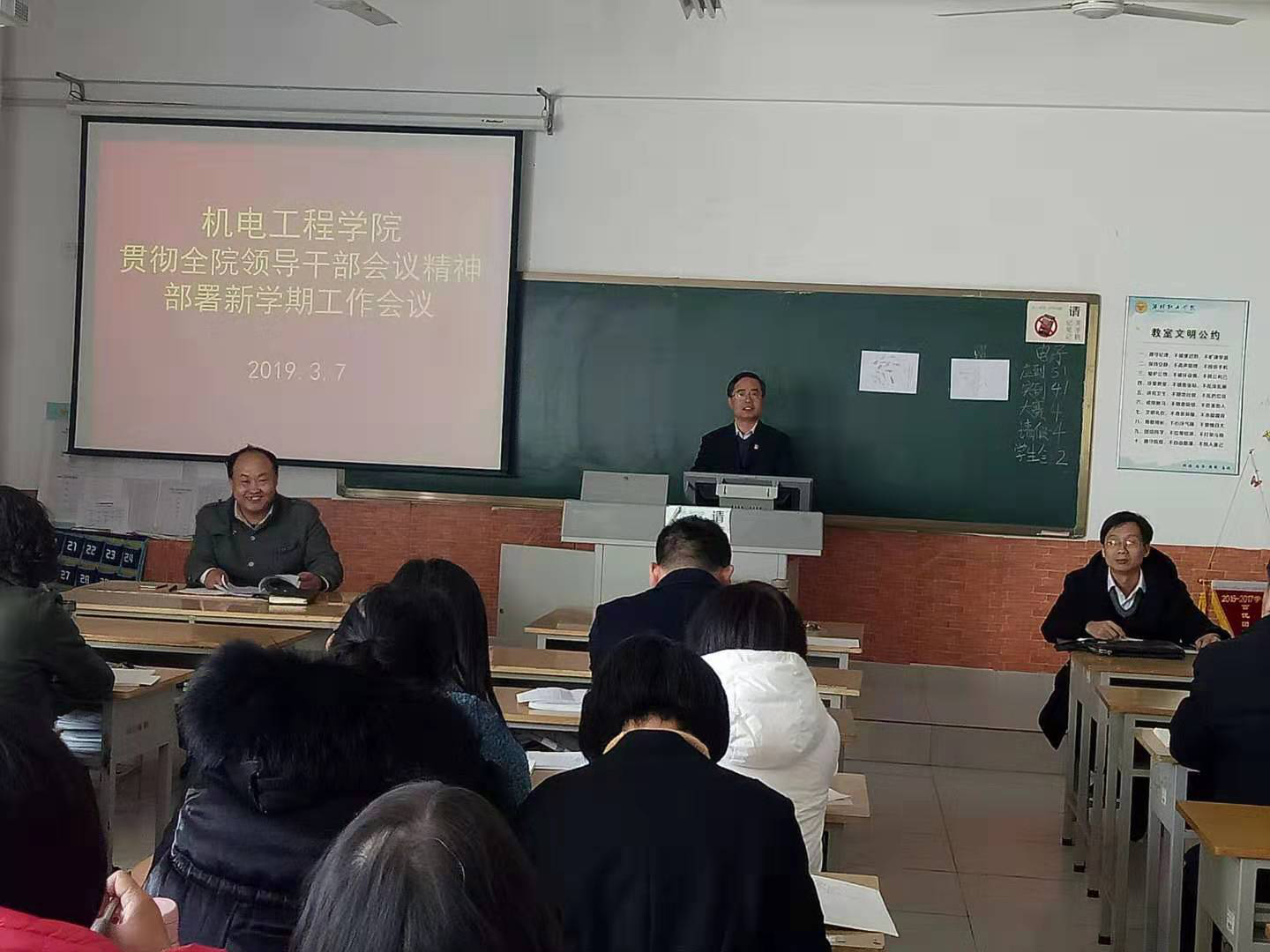 3月7日下午,伟德国际victor1946组织全体教师在惠泽2号楼A216召开新学期工作会议,学习贯彻全院领导干部会议精神,部署2019年新学期工作。会议由部门负责人主持,全体教职工参加。