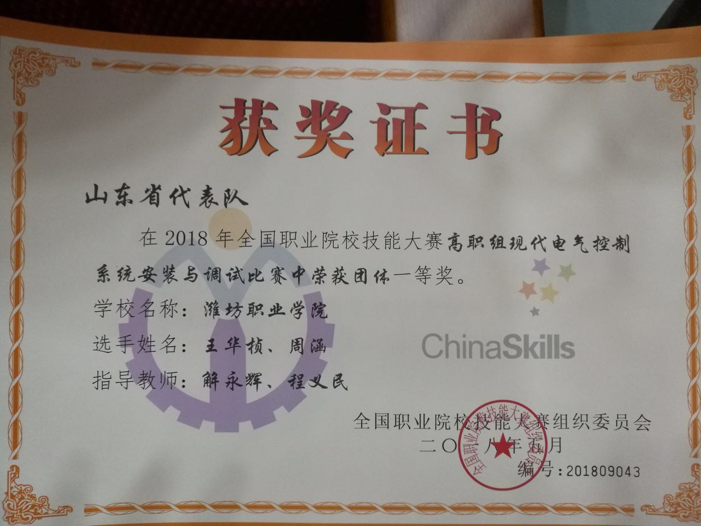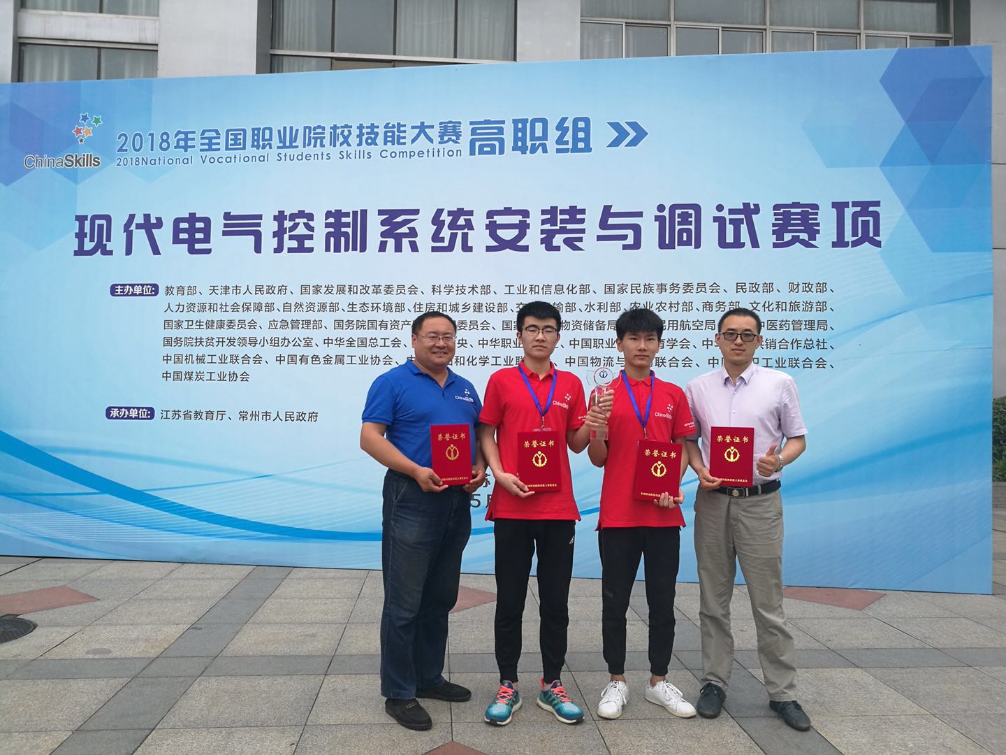 5月26至30日,2018年全国职业院校技能大赛高职组现代电气系统安装与调试赛项在常州机电职业技术公司举行。本次参加比赛的95支代表队来自全国29个省、直辖市、自治区,参赛选手、指导老师、领队达到570人,参赛的覆盖范围和规模创本赛项新高,解永辉、侯续杰、程义民、徐刚等老师指导的王华桢、周涵员工团队荣获一等奖。