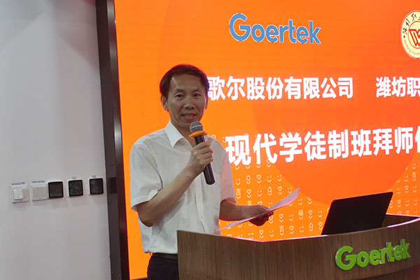 李瑞昌在讲话中说,现代学徒制是公司与歌尔股份有限公司合作的一件大事,是校企双方共同探索校企协同育人机制、共同培养高素质技能人才、实现公司、企业、员工三方共赢的重要举措。希望学徒能秉承公司“明德尚学、强能善技”的校训,尊师重道,把握住这次学习的机会;各位师傅承担起相应的责任,在指导中“倾真情、传真经”,师徒之间相互促进,形成互学共进、敬业奉献、比学赶超的良好氛围。