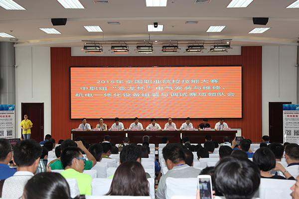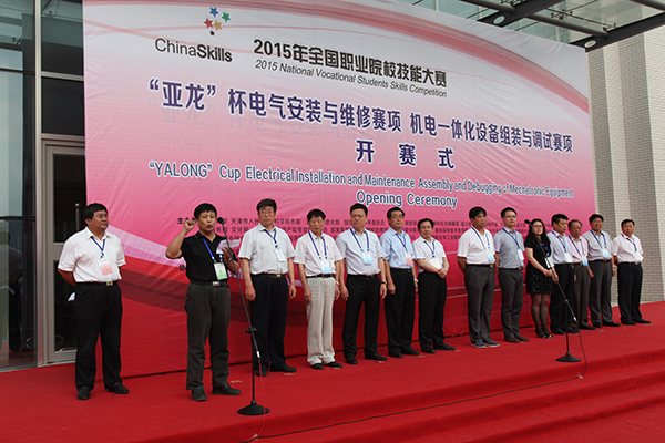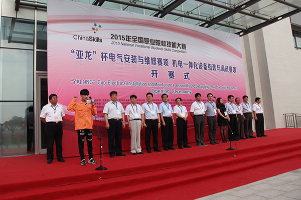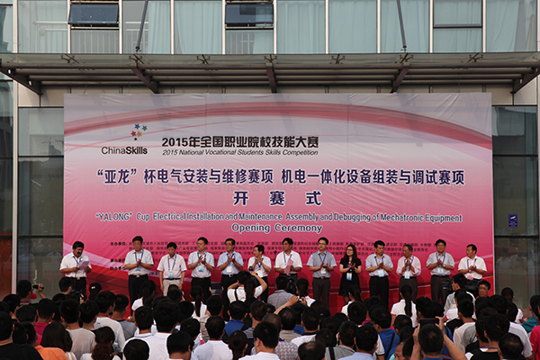 6月13日下午,2015年全国职业院校技能大赛“亚龙杯”电气安装与维修、机电一体化设备组装与调试赛项开赛式在公司滨海校区隆重举行。工信部教育与考试中心副主任周明,教育部职成教司办公室朱彬,山东省教育厅职教处调研员刘宝君、副处长赵丽,潍坊市政府党组成员、公司党委书记陈仁杰,潍坊市教育局局长徐友礼,浙江亚龙教育装备股份有限公司总经理陈传周,赛项顾问杨少光教授、曾祥富教授,潍坊市教育局党委委员、市招办书记李广敬,滨海开发区管委会副主任宋世伟,公司副经理贺志强出席,来自全国各地及韩国、越南、新加坡、印度尼西亚等国内外185支代表队370名参赛选手及指导教师、领队共计1000余人参加了开赛式。公司经理王家爱主持开赛式。