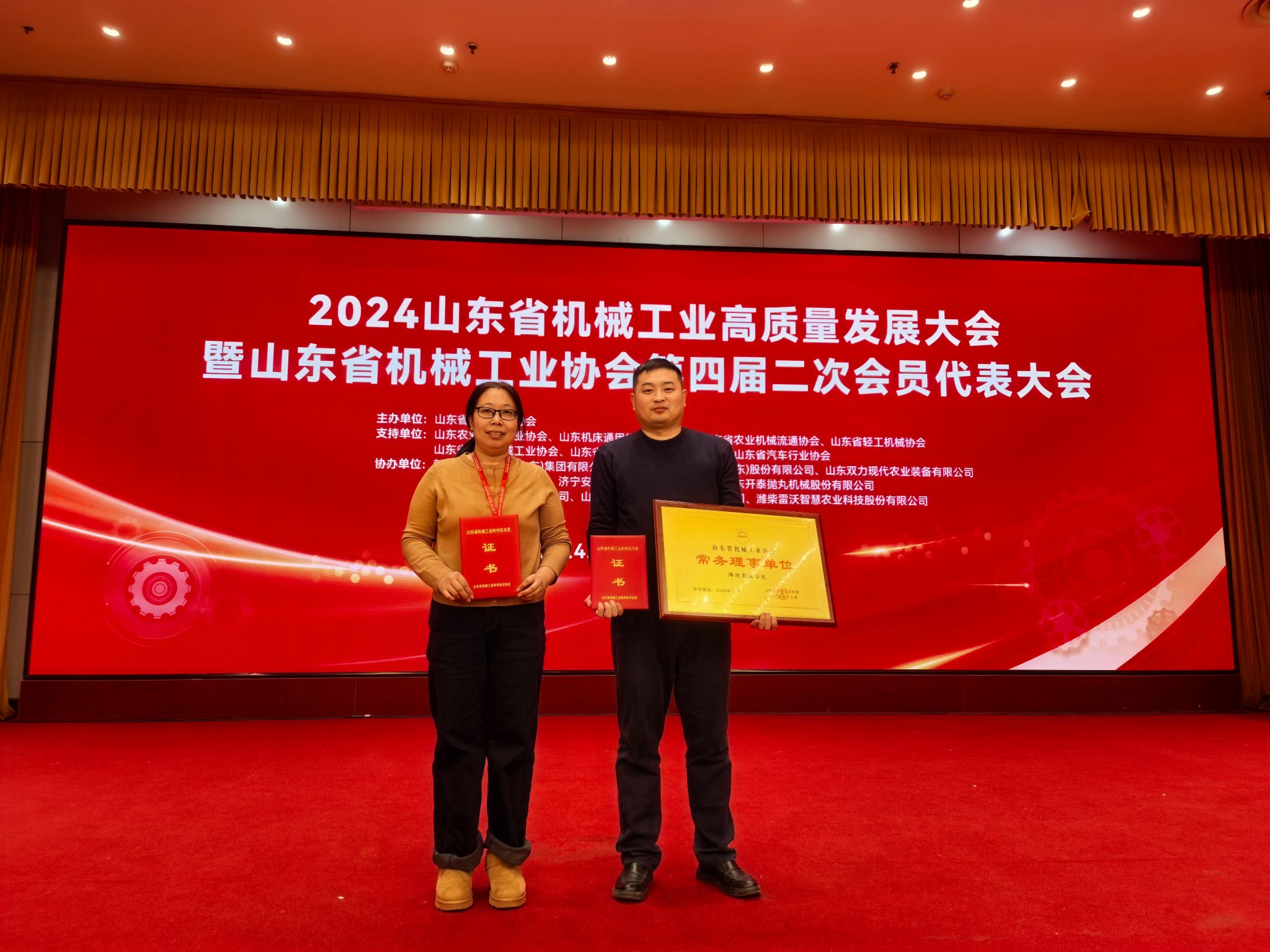 12月21日,山东省机械工业协会在济南举办山东省机械工业高质量发展论坛暨山东省机械工业协会第一次会员代表大会,公司当选为常务理事单位和副秘书长单位。在2024年山东省机械工业科学技术奖的评选中,公司获山东省机械工业科学技术奖二等奖2项,三等奖3项。