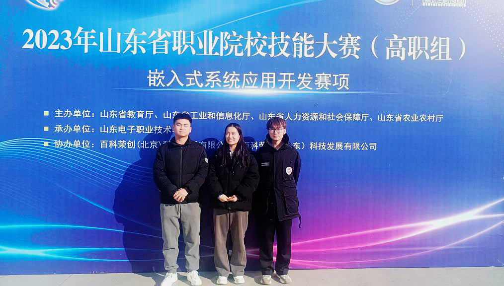 12月2日,2023年山东省职业院校技能大赛高职组“嵌入式系统应用开发”赛项在山东电子职业技术公司举行,共有来自全省的45支代表队参赛。公司伟德国际victor1946员工王飞翔、杜佳佳、徐文轩,指导教师王琰琰、张强、杨晓燕、孙春萍组成的代表队,在比赛中沉着应战,通力合作,最终获得该赛项一等奖的好成绩。