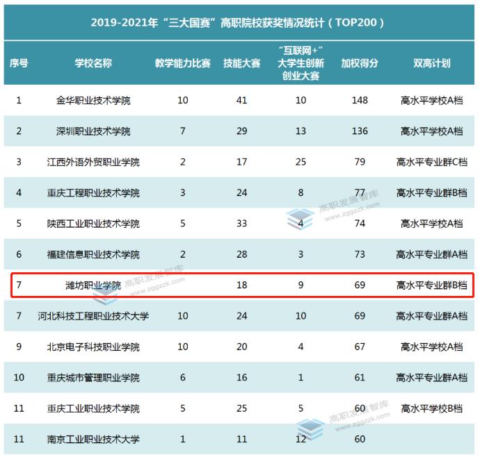 伟德国际victor1946自动化高水平专业建设群在2019-2021年双高建设“三大国赛”排名中位列第七位。