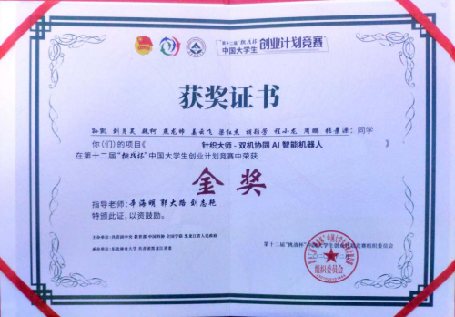 12月9日,第十二届“挑战杯”中国老员工创业计划竞赛全国决赛在东北林业大学落下帷幕,公司孙凯等同学的“针织大师-双机协同AI智能机器人”项目荣获金奖,辛海明、郭大路等老师荣获全国优秀指导老师奖。公司同时获得“挑战杯”全国优胜杯,全国仅10所高职院校获此殊荣,是二十多年来山东省唯一获得“挑战杯”中国老员工创业计划竞赛金奖的高职公司。