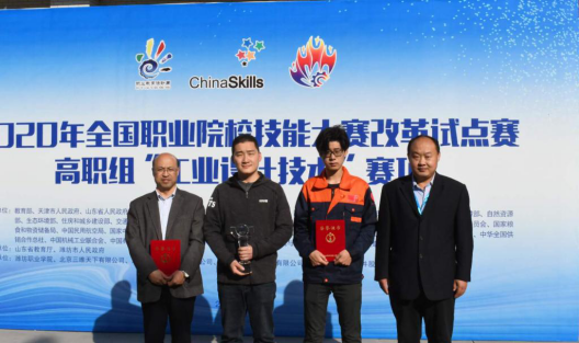 11月6日至11月10日由教育部主办的2020年全国职业院校技能大赛改革试点赛高职组“工业设计技术”赛项在公司举行,来自全国28所高校的选手参加了本次比赛。公司伟德国际victor1946选派2018级模具设计与制造班员工乔士增,指导教师姜文革组成的山东省参赛队最终以总分第一名的优异成绩荣获一等奖。